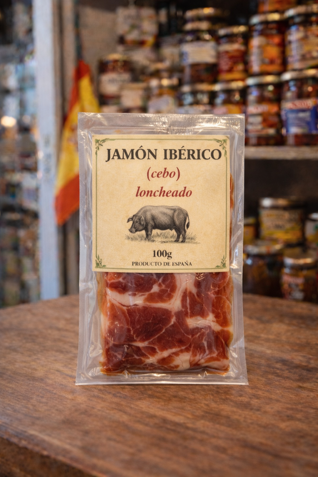 Jamón ibérico loncheado, curación lenta. Ideal para tabla de tapas.